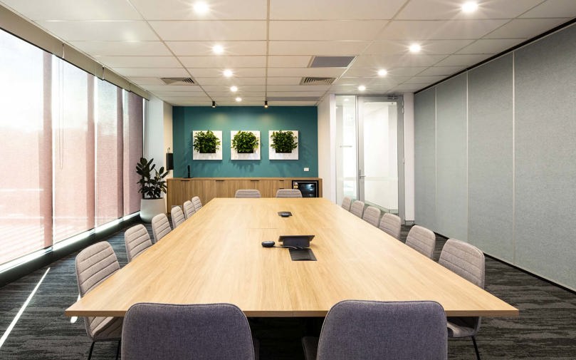 Solid walls were replaced with glass to increase the natural light and create a feeling of openness. Operable walls were installed in key areas to maximise use and flexibility of space.